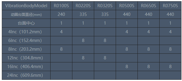 圓形擴(kuò)展臺(tái)具有良好的頻響特性,其臺(tái)面螺釘分布符合上表標(biāo)注尺寸。